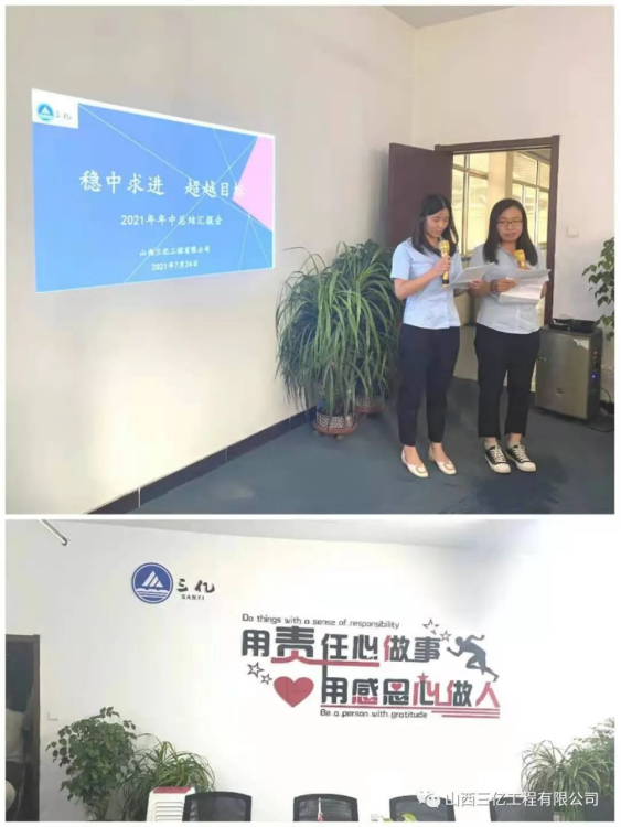 2021年07月24日,山西三億工程有限公司2021年上半年工作總結(jié)會議在公司辦公室召開,會議以“穩(wěn)中求進(jìn),超越目標(biāo)”為主題,公司領(lǐng)導(dǎo)以及各部門經(jīng)理參加本次會議,由索紅、張月影主持,各部門圍繞會議主題對上半年的工作進(jìn)行匯報、同時分析當(dāng)前形勢、查找短板、部署任務(wù),和目標(biāo)比對,制定下半年措施和計劃,確保各指標(biāo)能夠超額完成。